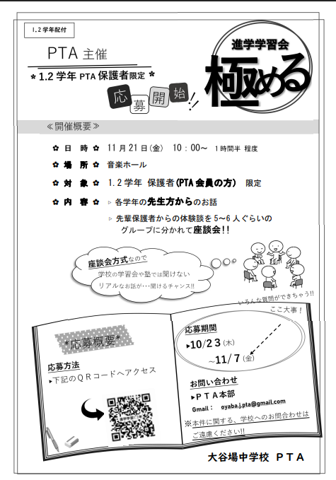 【PTA主催!進学学習会~1.2学年PTA保護者限定】